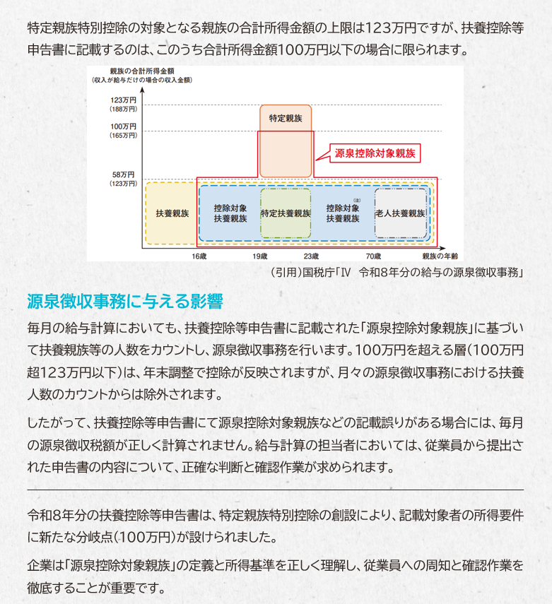 企業は「源泉控除対象親族」の定義と所得基準を正しく理解し、 従業員への周知と確認作業を徹底することが重要です。