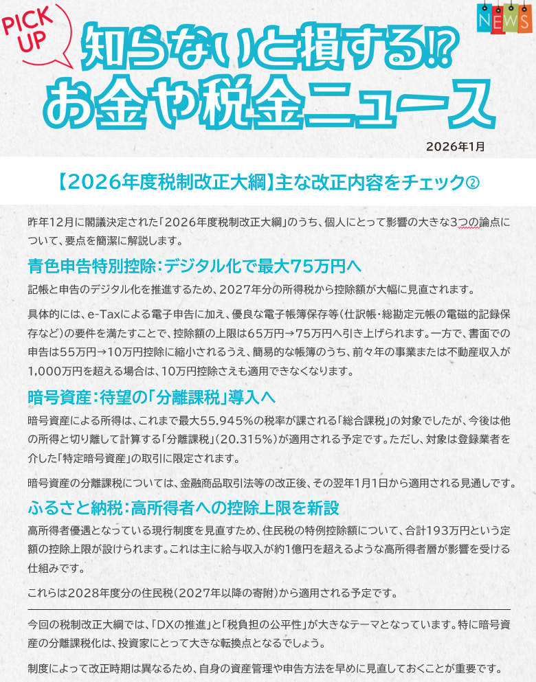 『<2026年度税制改正大綱>主な改正内容をチェック➁』です。