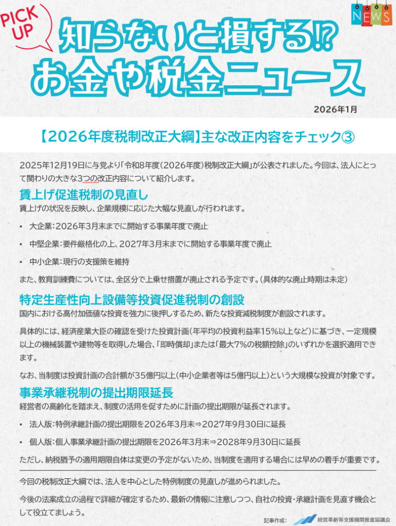 『<2026年度税制改正大綱>主な改正内容をチェック③』です。
