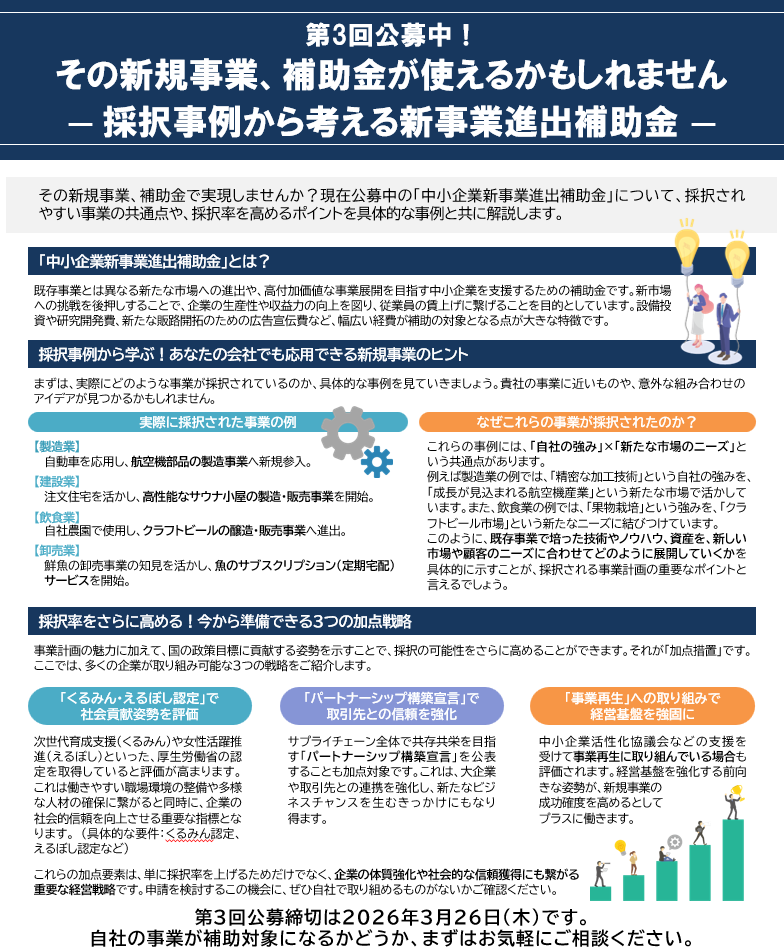 「第3回公募中!その新規事業、補助金が使えるかもしれません