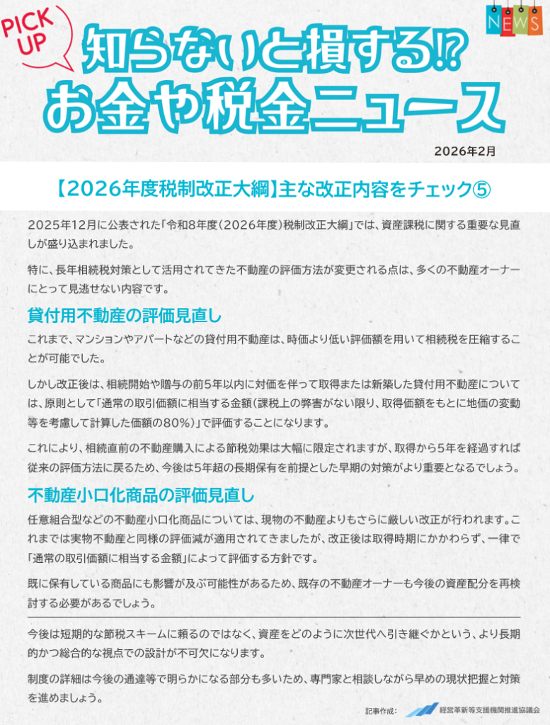『<2026年度税制改正大綱>主な改正内容をチェック⑤』です。