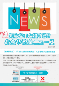 今回のテーマは、 『<健康保険証> 12月2日以降は原則廃止!入退社時の注意点を確認』です。 政府は健康保険証の原則廃止を進めており、 従来の健康保険証の発行は2024年12月2日をもって 既に終了しています。 さらに2 […]