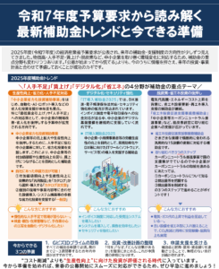 今回のテーマは、 「令和7年度予算要求から読み解く 最新補助金トレンドと今できる準備」です。 ▼動画案内はこちら 視聴はこちら ■ はじめに ━━━━━・・・・・‥‥‥……… 2025年度(令和7年度)の経済産業省予算要 […]